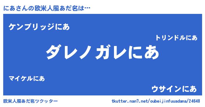 | 意味不明あだ名 | 『住所不定無職にあ(47歳)』『自称にあ』 |