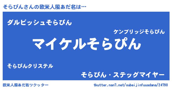 | 男性向けラノベタイトル風あだ名 | 『そらぴんの憂鬱』 |
