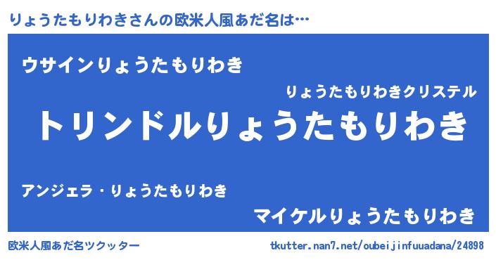 | 男性向けラノベタイトル風あだ名 | 『りょうたもりわき~年齢イコール彼女いない歴の魔法使い~』 |