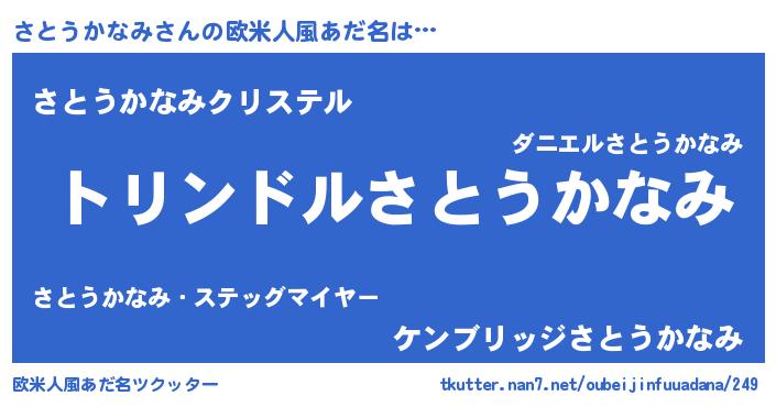 | ヘコむあだ名 | 『酢こんぶ』『さとうかなみ(遠い目)』 |
