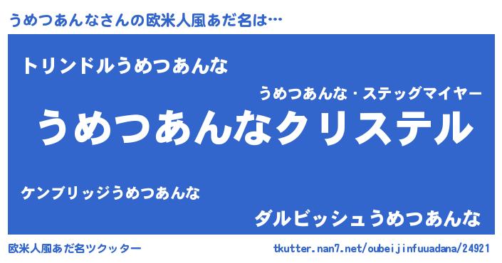 | 意味不明あだ名 | 『うめつあんなフォーエバー』 |
