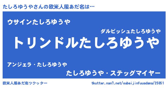 | 意味不明あだ名 | 『つくし科たしろゆうや属』 |