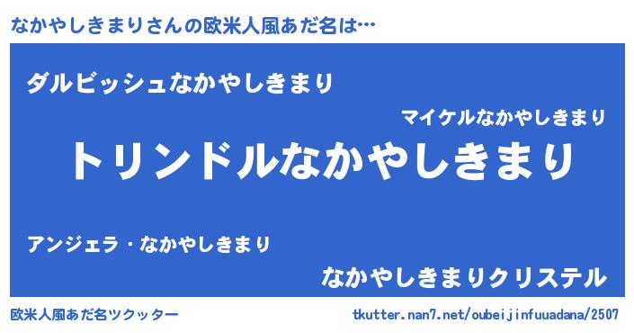 | 男性向けラノベタイトル風あだ名 | 『転生したらなかやしきまりだった件』 |