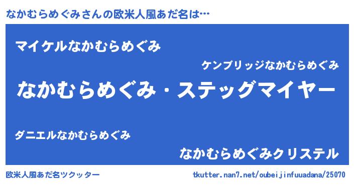 | 男性向けラノベタイトル風あだ名 | 『緋弾のナカムラメグミ』 |