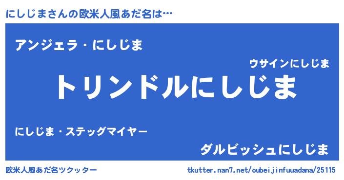 | 男性向けラノベタイトル風あだ名 | 『ニシジマスレイヤー』 |