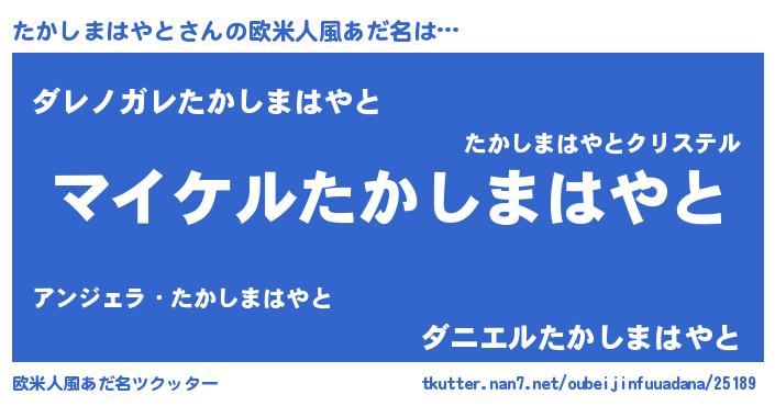 | 男性向けラノベタイトル風あだ名 | 『タカシマハヤトアートオンライン』 |