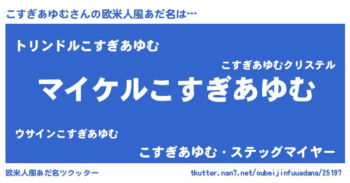 | 男性向けラノベタイトル風あだ名 | 『こすぎあゆむの憂鬱』 |