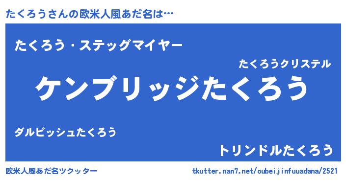 | 男性向けラノベタイトル風あだ名 | 『Re:たくろうから始める異世界生活』 |