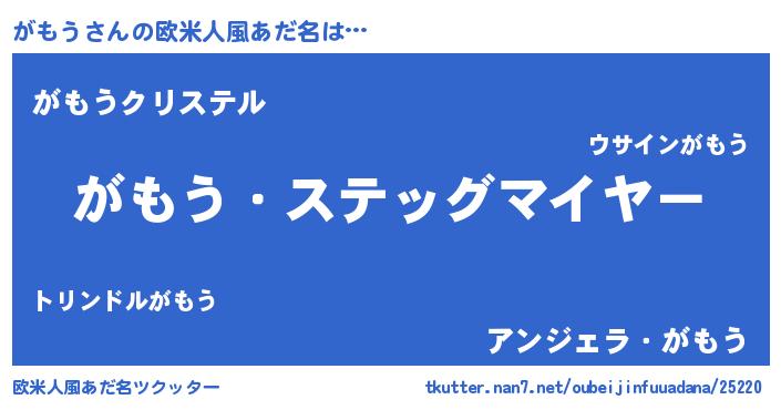 | 男性向けラノベタイトル風あだ名 | 『緋弾のガモウ』『はたらくがもうさま!』 |