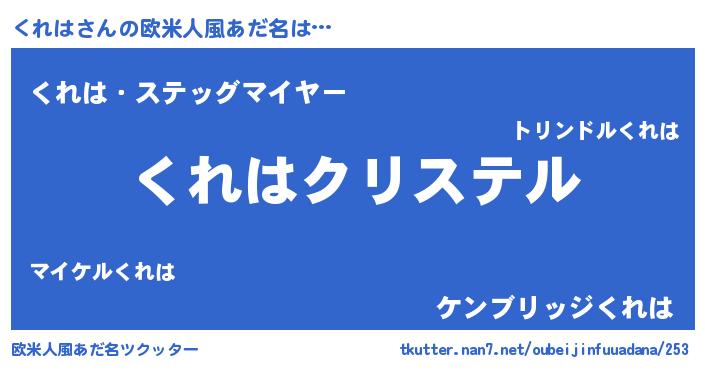 | 意味不明あだ名 | 『くれはフォーエバー』『自称くれは』 |