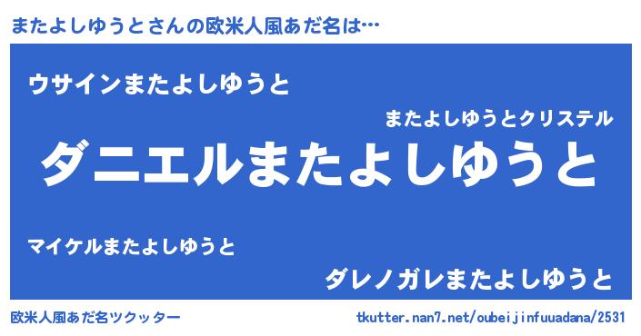 | ポケモン風あだ名 | 『マックウザ』『ヒマタヨシユウト』 |