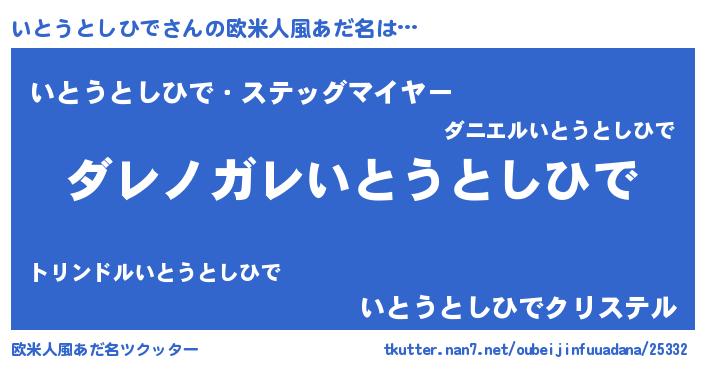 | 男性向けラノベタイトル風あだ名 | 『この素晴らしい世界にいとうとしひでを!』 |