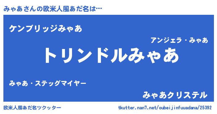 | 男性向けラノベタイトル風あだ名 | 『みゃあ~年齢イコール彼女いない歴の魔法使い~』 |