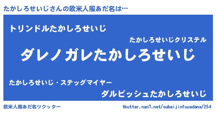 | 男性向けラノベタイトル風あだ名 | 『この素晴らしい世界にたかしろせいじを!』 |