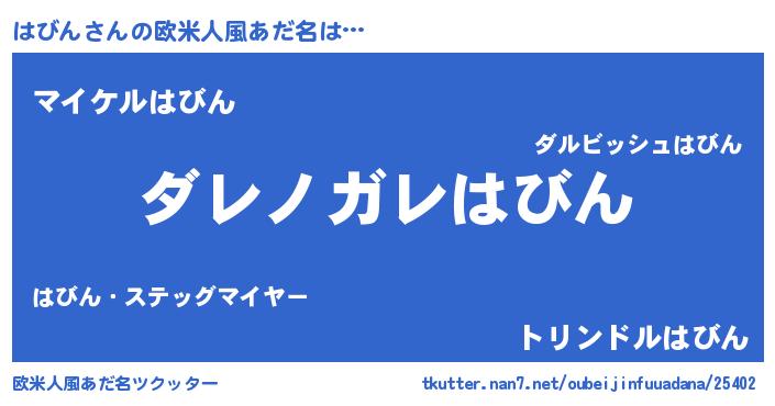 | ヘコむあだ名 | 『はびにゅー』『はびん(苦笑)』 |