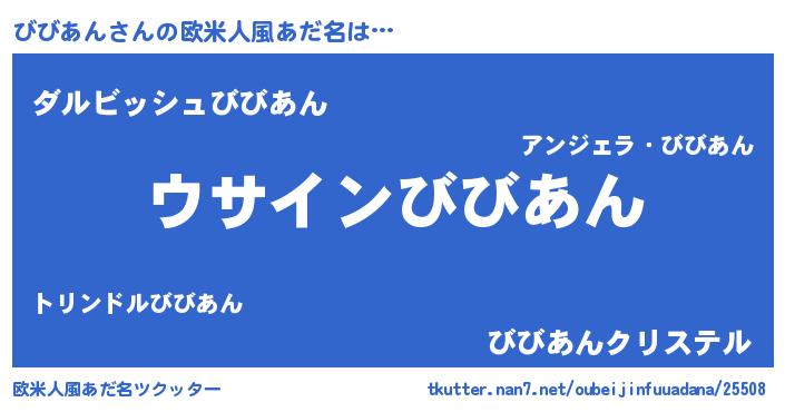 | 女子向けラノベタイトル風あだ名 | 『びびあんの卵を拾いまして』 |