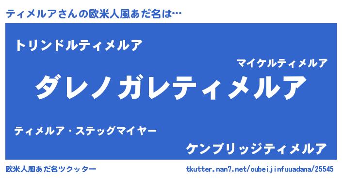 | 男性向けラノベタイトル風あだ名 | 『この素晴らしい世界にティメルアを!』 |