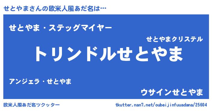 | 女子向けラノベタイトル風あだ名 | 『せとやまの玉の輿計画!』 |
