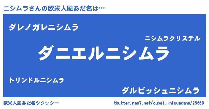 | 男性向けラノベタイトル風あだ名 | 『おまえをオタクにしてやるから、俺をニシムラにしてくれ! 』 |