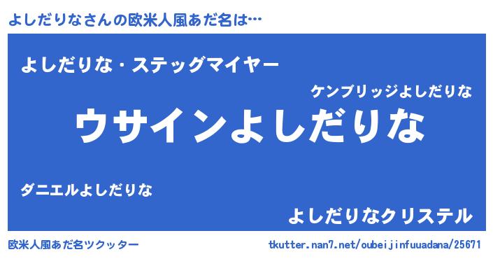 | 男性向けラノベタイトル風あだ名 | 『よしだりなの嫁は女の子じゃないと思った?』 |