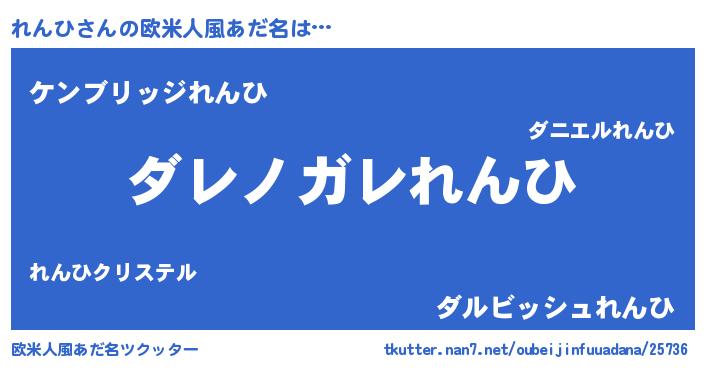 | 男性向けラノベタイトル風あだ名 | 『この素晴らしい世界にれんひを!』 |