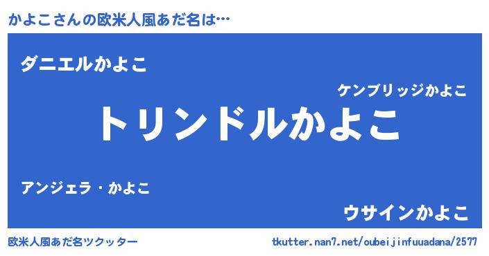 | 女子向けラノベタイトル風あだ名 | 『かよこの玉の輿計画!』 |