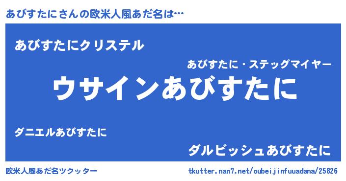 | 男性向けラノベタイトル風あだ名 | 『あびすたにの嫁は女の子じゃないと思った?』 |