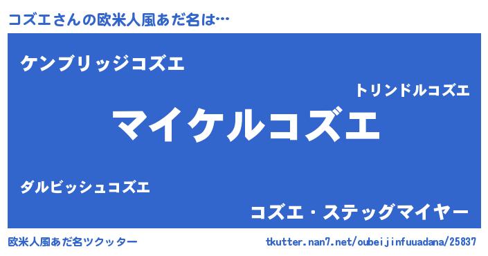 | ヒーロー風カッコイイあだ名 | 『スーパーコズエ』『サイバー戦士コズエ』 |