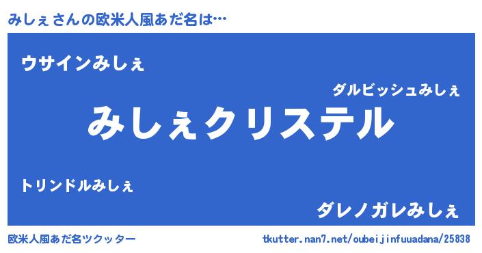 | 女子向けラノベタイトル風あだ名 | 『みしぇの婚約者』『みしぇは平凡を望む』 |