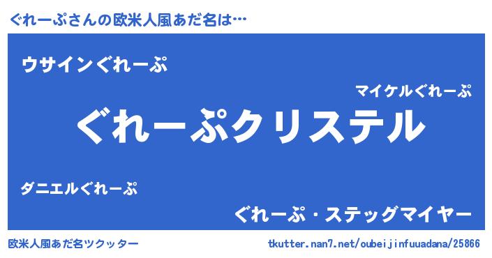| ヒーロー風カッコイイあだ名 | 『ウルトラぐれーぷマン』『炎刃騎士グレ』 |