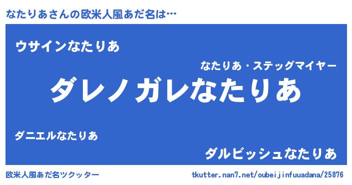 | 意味不明あだ名 | 『住所不定無職なたりあ(9歳)』 |