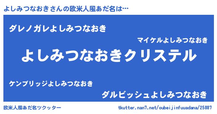 | 男性向けラノベタイトル風あだ名 | 『やはりよしみつなおきの青春ラブコメはまちがっている 』 |