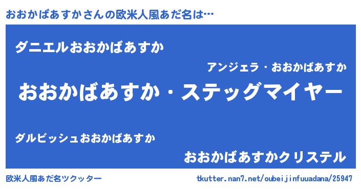 | ヘコむあだ名 | 『豆乳』『おおかばあすか(笑)』 |