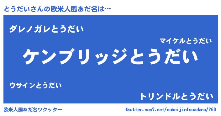 | ピコ太郎風あだ名 | 『トコ二郎』『トウ十郎』『トト太郎』 |
