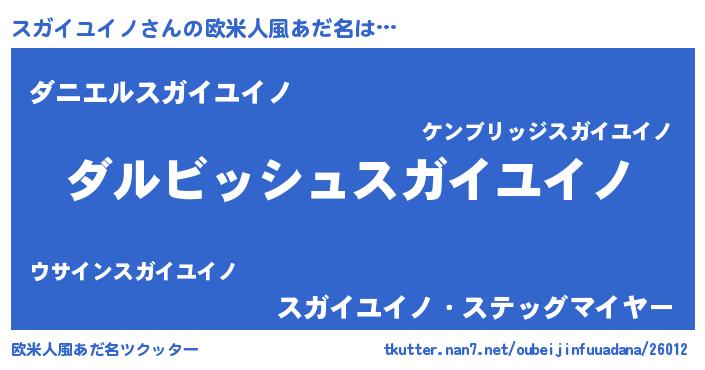 | 胡散臭い通販商品みたいなあだ名 | 『絶対に幸福をもたらす水素水…その名も「スガイユイノ」』 |