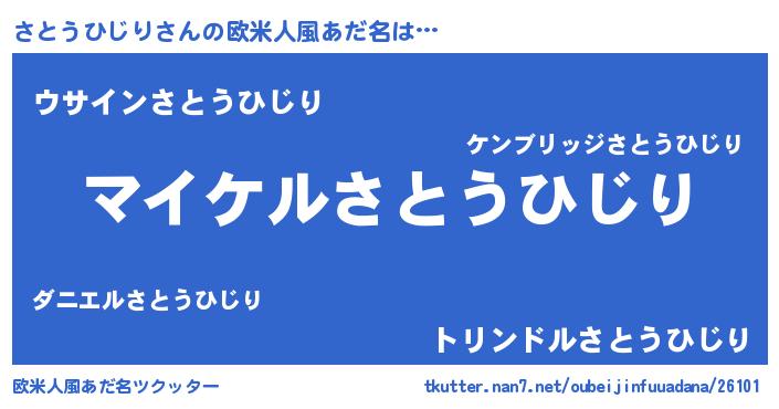 | 男性向けラノベタイトル風あだ名 | 『サトウヒジリアートオンライン』 |