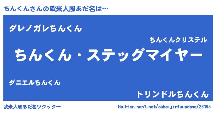 | 男性向けラノベタイトル風あだ名 | 『うちのちんくんが世界を掌握している!』 |