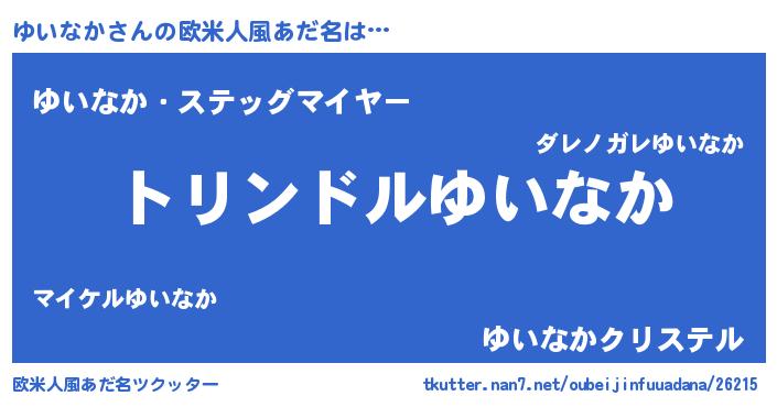 | 男性向けラノベタイトル風あだ名 | 『ゆいなか~年齢イコール彼女いない歴の魔法使い~』 |