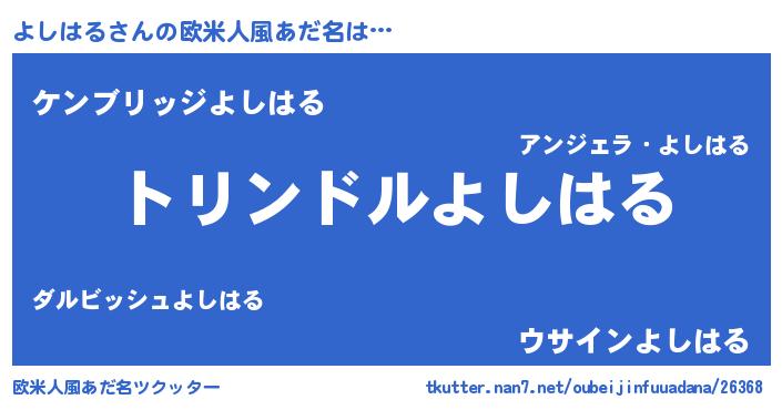 | 女子向けラノベタイトル風あだ名 | 『よしはるの玉の輿計画!』 |