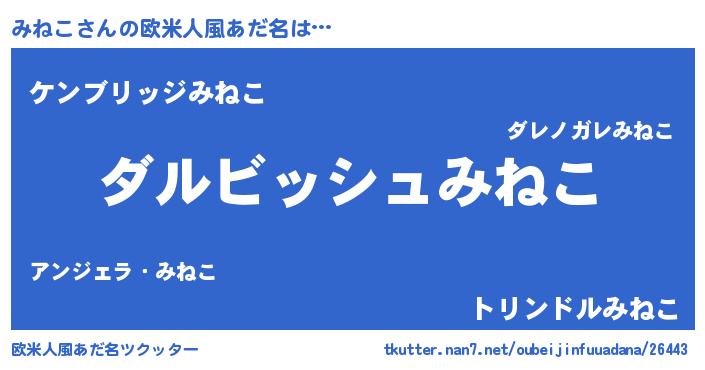 | 男性向けラノベタイトル風あだ名 | 『みねこという概念が存在しない退屈な世界 』 |