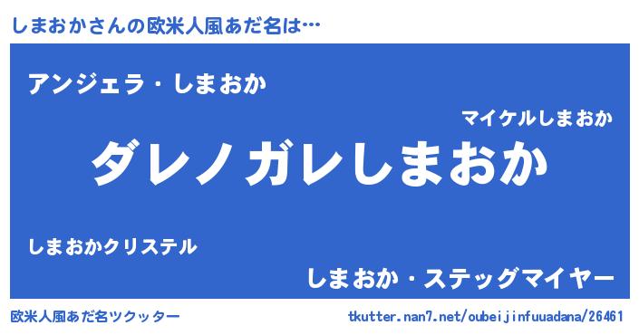 | 男性向けラノベタイトル風あだ名 | 『この素晴らしい世界にしまおかを!』 |