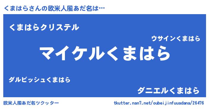 | 男性向けラノベタイトル風あだ名 | 『くまはらの憂鬱』 |