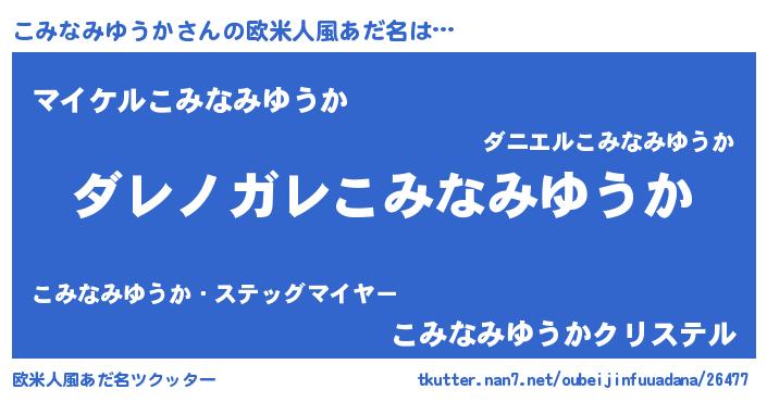 | 男性向けラノベタイトル風あだ名 | 『魔弾の王とこみなみゆうか』 |