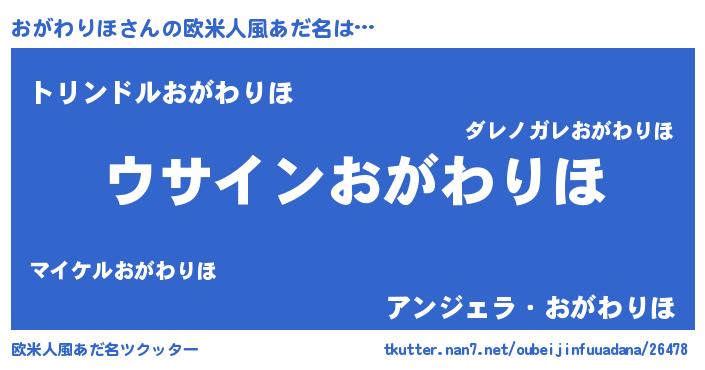| 女子向けラノベタイトル風あだ名 | 『おがわりほは平凡を望む』 |