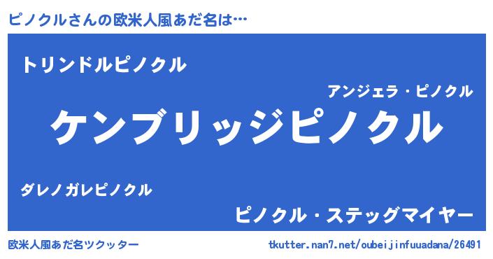 | 意味不明あだ名 | 『自称ピノクル』『なめこ科ピノクル属』 |