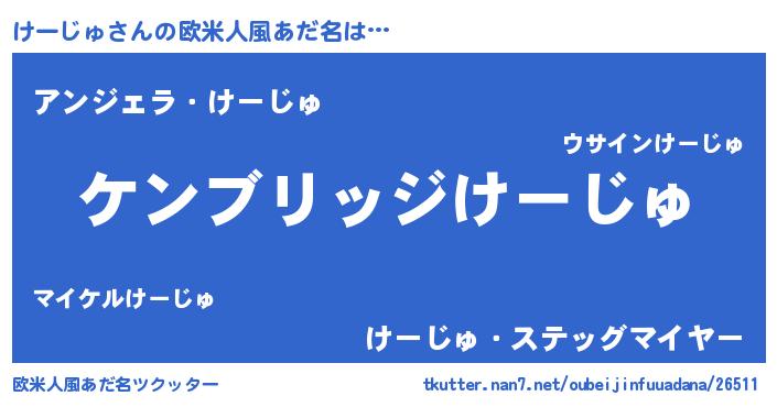| 男性向けラノベタイトル風あだ名 | 『Re:けーじゅから始める異世界生活』 |