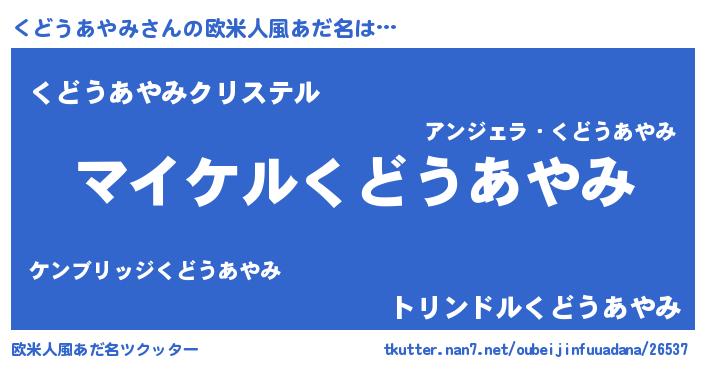 | 男性向けラノベタイトル風あだ名 | 『クドウアヤミアートオンライン』 |