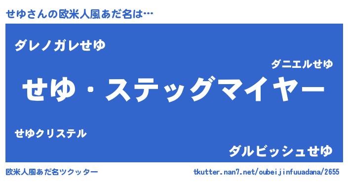| 男性向けラノベタイトル風あだ名 | 『うちのせゆが世界を掌握している!』 |
