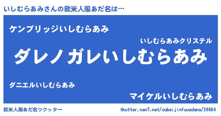 | 男性向けラノベタイトル風あだ名 | 『魔弾の王といしむらあみ』 |
