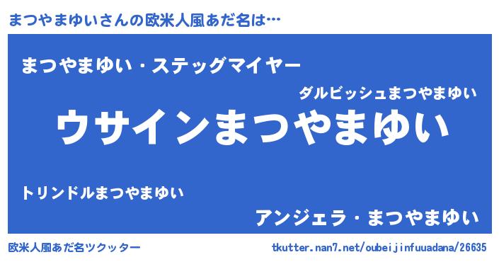 | 女子向けラノベタイトル風あだ名 | 『まつやまゆいの卵を拾いまして』 |